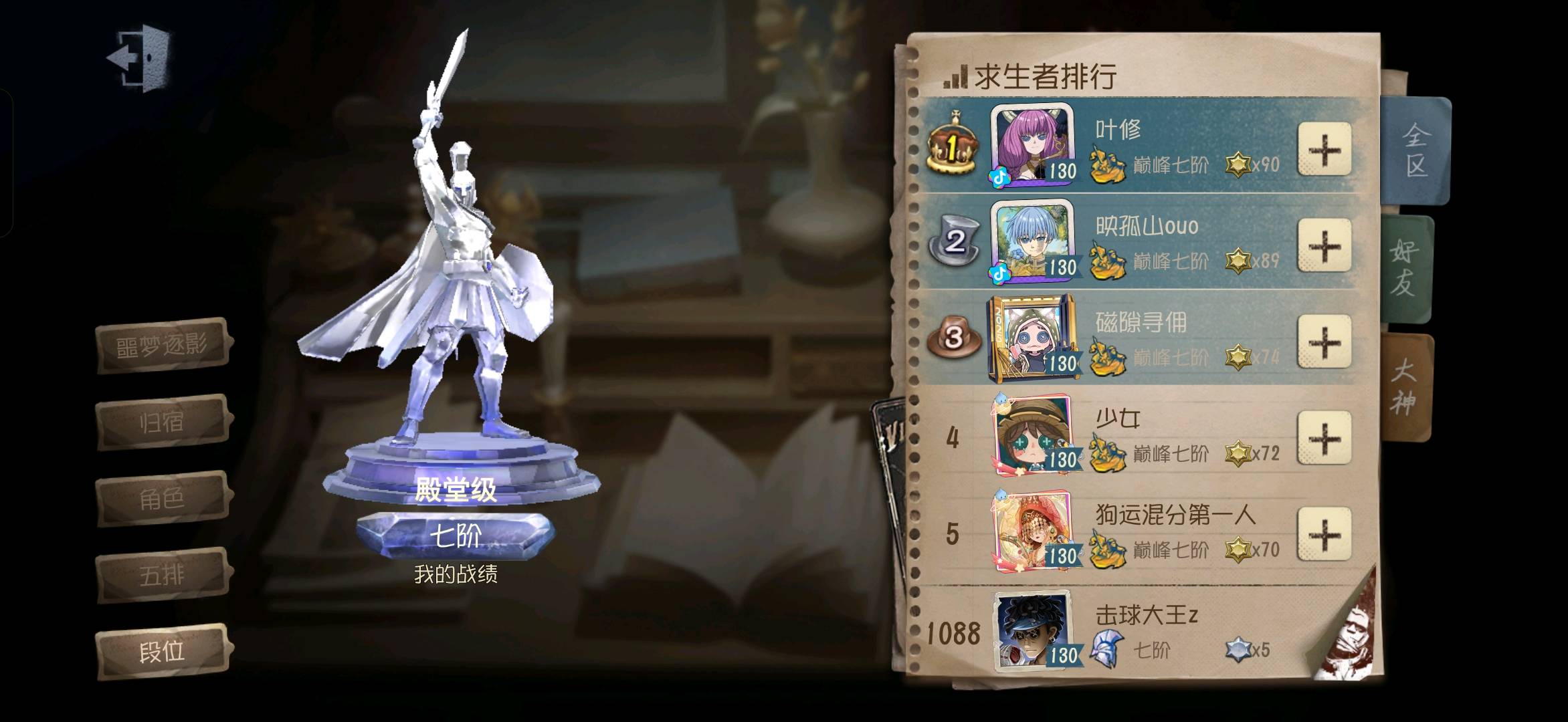 第五人格代练认知,人类巅七以下均可接,价格可议 历史五十星人榜前一千,a击球